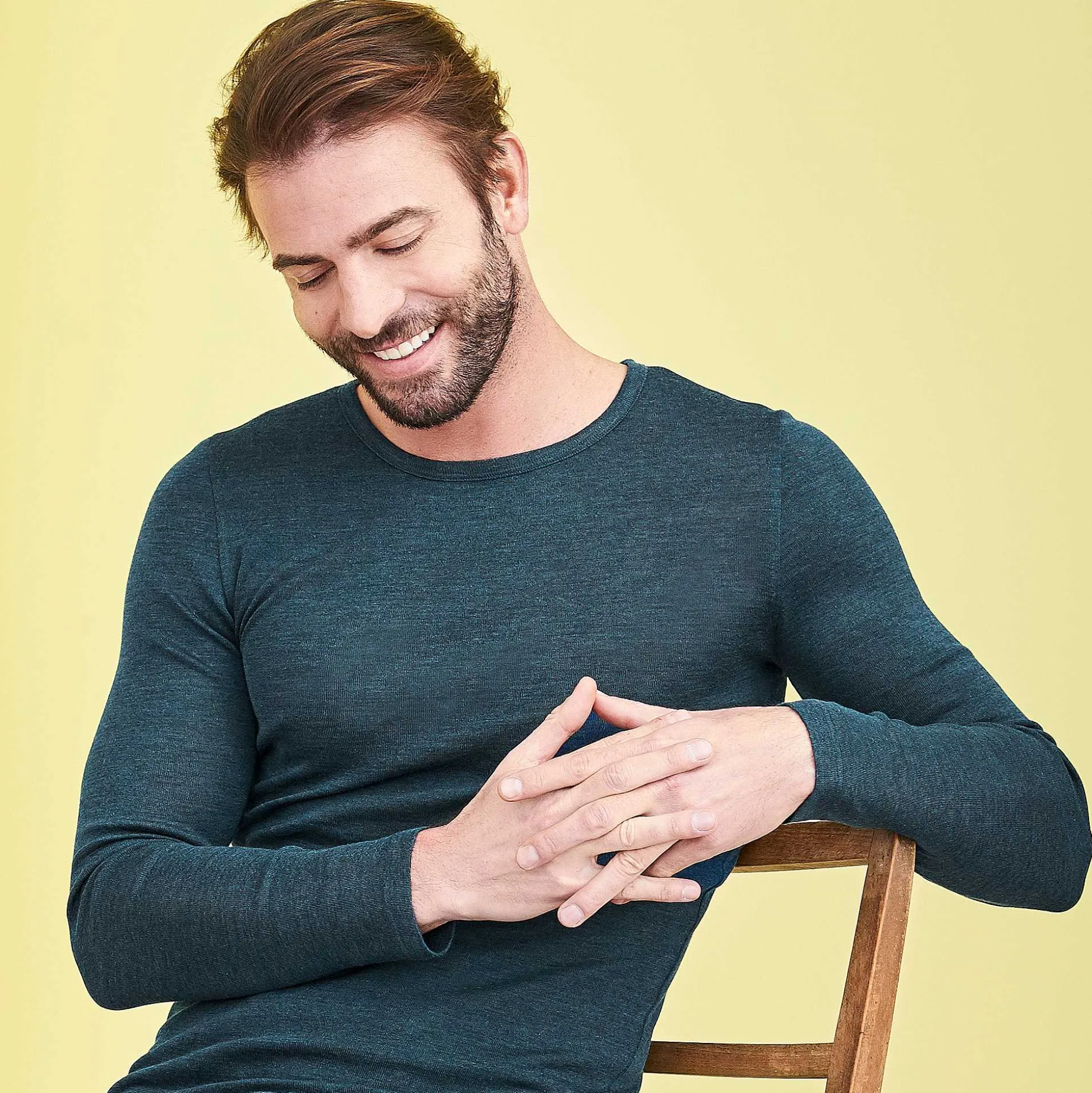 Cette Chemise À Manches Longues Près Du Corps Pour Homme Est Plus Qu’Un Simple Sous-Vêtement Fonctionnel ! Avec Un Mélange Sophistiqué De Laine Biologique Durable Et De Soie Fine, Il Est Non Seulement Doux Et Confortable, Mais Il Se Distingue Également Par Des Propriétés De Port Respectueuses De La Peau : Le Mélange De Matériaux Régule La Température Et L’Humidité. La Chemise Se Réchauffe Par Temps Frais Et Se Rafraîchit À Des Températures Plus Élevées, Ce Qui La Rend Idéale Pour Les Sports D’Hiver Ou Comme Sous-Vêtement Long.
