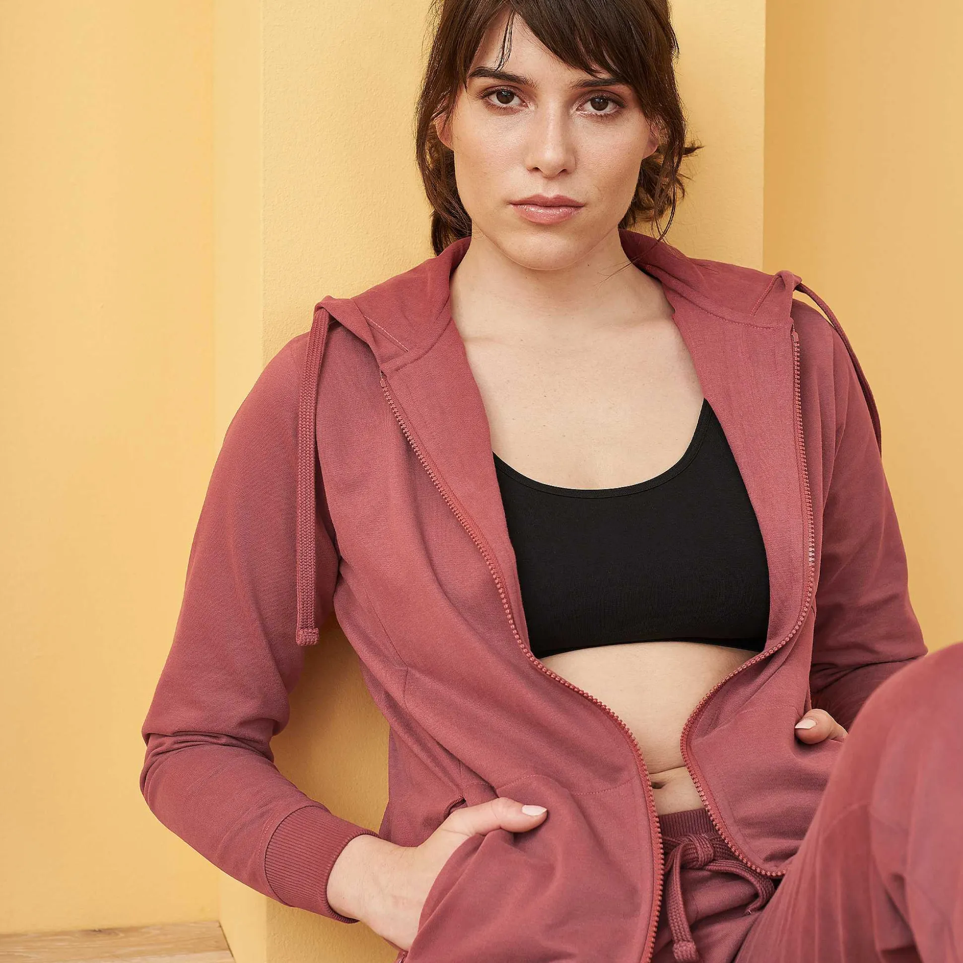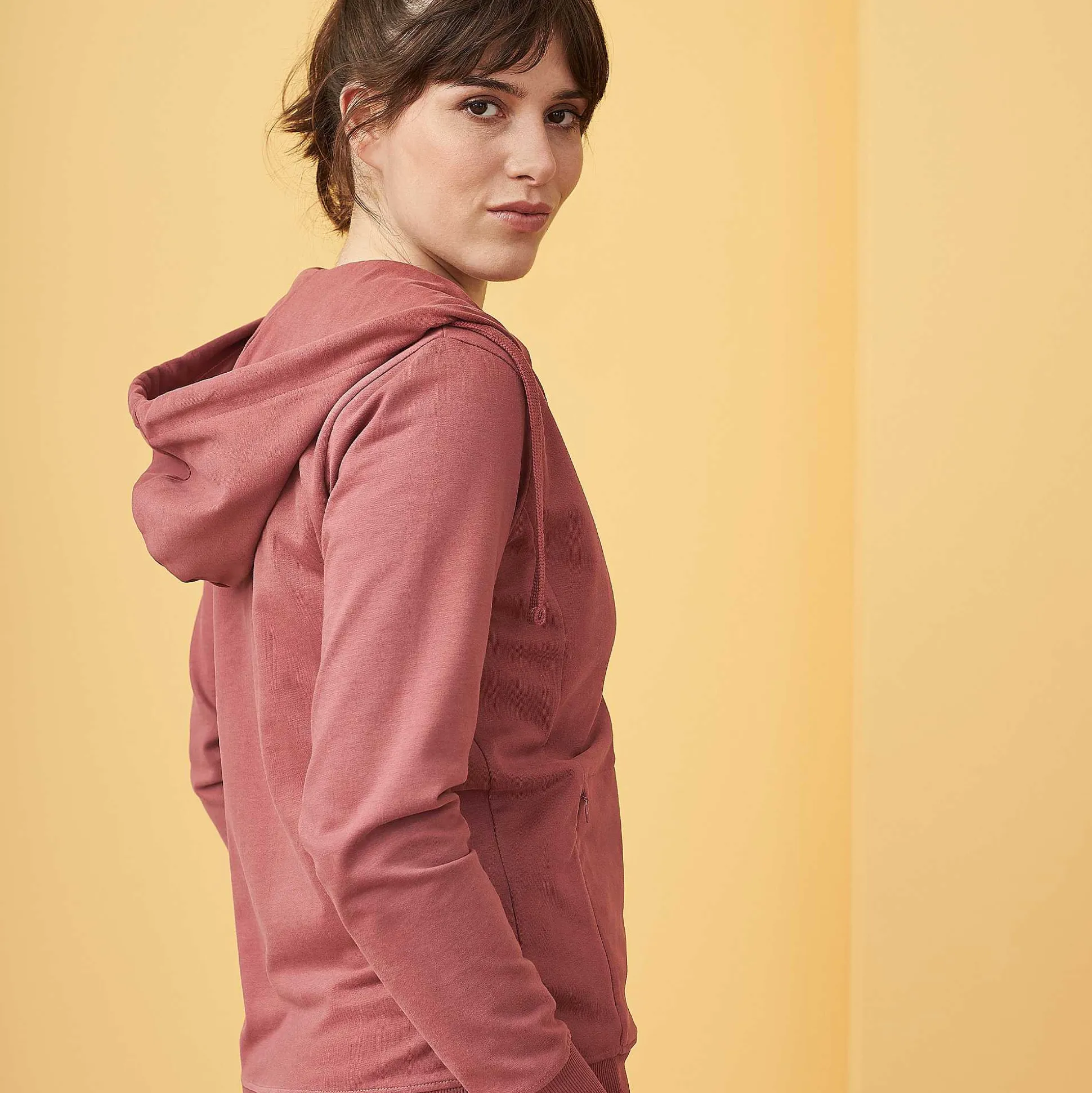 Sweat À Capuche Moderne Et Féminin Fabriqué À Partir D’Un Tissu Sweat En Coton Biologique Léger Et Velouté Avec Des Panneaux Latéraux Incrustés Pour Un Look Légèrement Ajusté Et Une Liberté De Mouvement Exceptionnelle. Poches Kangourou Cousues Avec Fermetures Éclair Fines Et Dissimulées Pour Que Rien Ne Puisse Tomber. Fermeture Éclair Sur Toute La Longueur Et Logo Subtilement Brodé, Tous Deux Ton Sur Ton. La Taille Et Les Poignets En Tricot Côtelé Large Et Robuste Garantissent Un Ajustement Fiable. Un Look Attrayant Pour Un Style De Vie Actif.