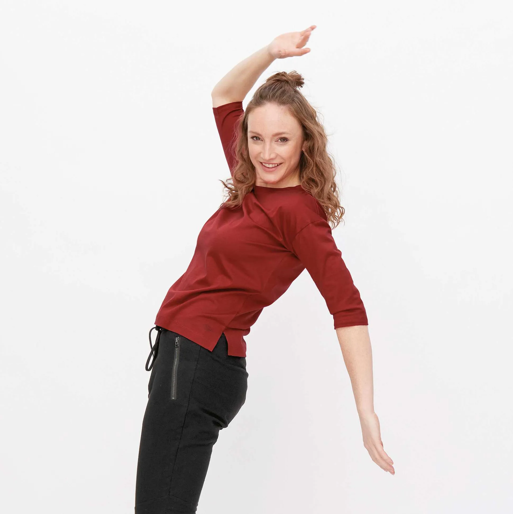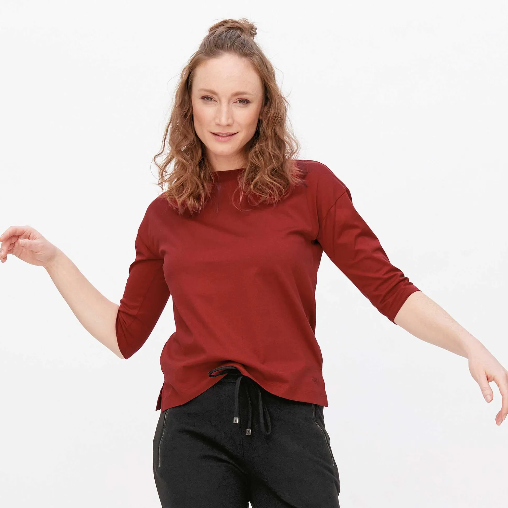 Cette Chemise Simple À Manches 3/4 Pour Femme Est Le Choix Parfait Tout Au Long De L’Année. La Coupe Large Et Les Épaules Découpées Sont Très Tendance Et Conviennent À Toutes Les Silhouettes. Le Fil Torsadé, Composé À 100 % De Coton Biologique Durable, Est Légèrement Brillant Et Donne À Cette Chemise Décontractée Une Texture Fine Et De Haute Qualité. Grâce Aux Poignets Plats Et Aux Fentes Latérales Pratiques, Ce Haut Décontracté S’Ajuste Parfaitement, Même Lorsque Vous Êtes En Déplacement.